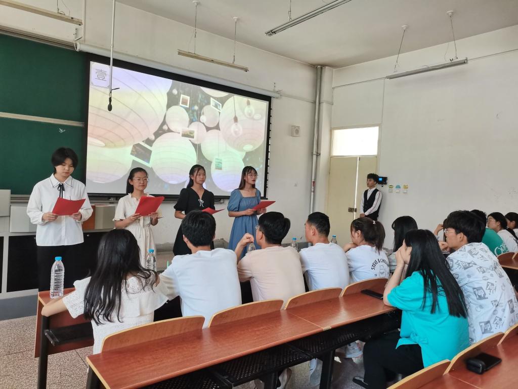 为提高师生思想道德修养和文明素质,培养当代老员工的兴趣爱好,丰富课余生活,做到传统文化的继承与弘扬。公司于2021年5月30日于八教107举办第四届“国学经典诵读大赛”。陈敏、杨繁、汪浩、孙丽丽、巨晓慧、李亚君为出席本次活动的嘉宾,各班班长、团支书、员工代表及全体员工会工作人员参加此次活动。
