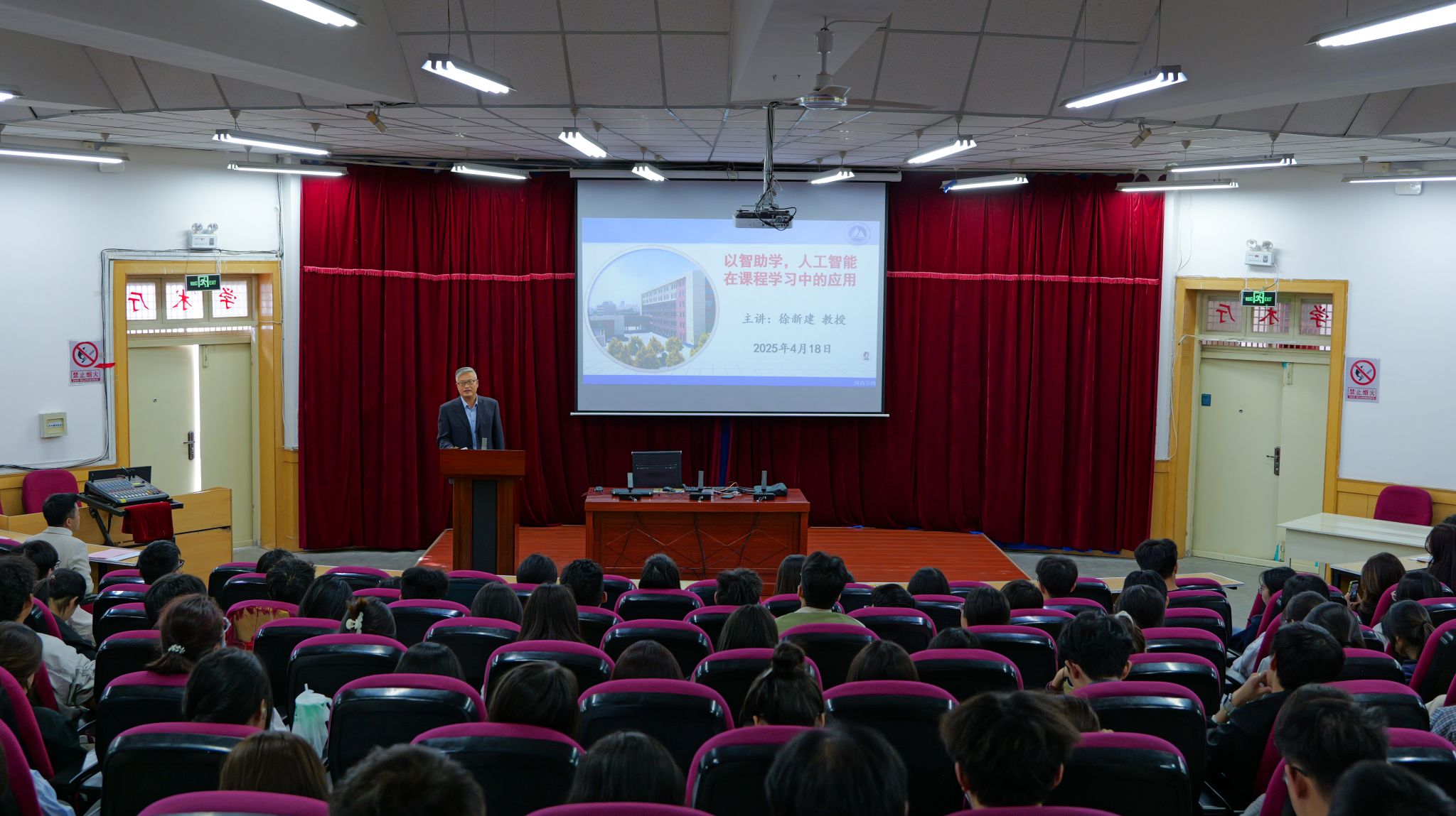 4月18日,最靠谱的十大足球平台邀请徐新建教授在学术厅做了题为“以智助学,人工智能在课程学习中的应用”主题讲座,最靠谱的十大足球平台师生共300余人参加。