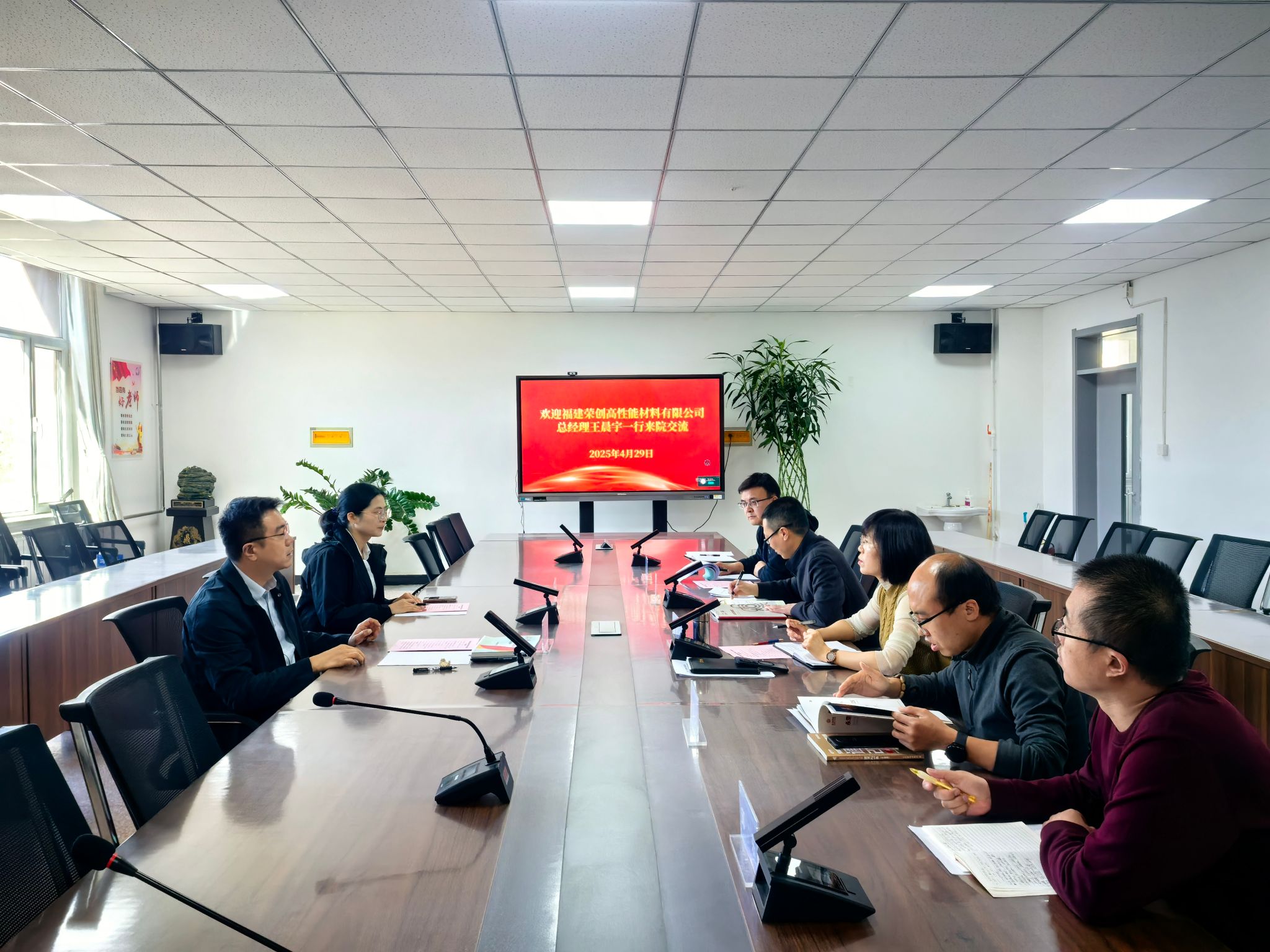 4 月 29 日,福建荣创高性能材料有限公司受邀到最靠谱的十大足球平台考察交流,公司负责人、部分老师参与座谈。