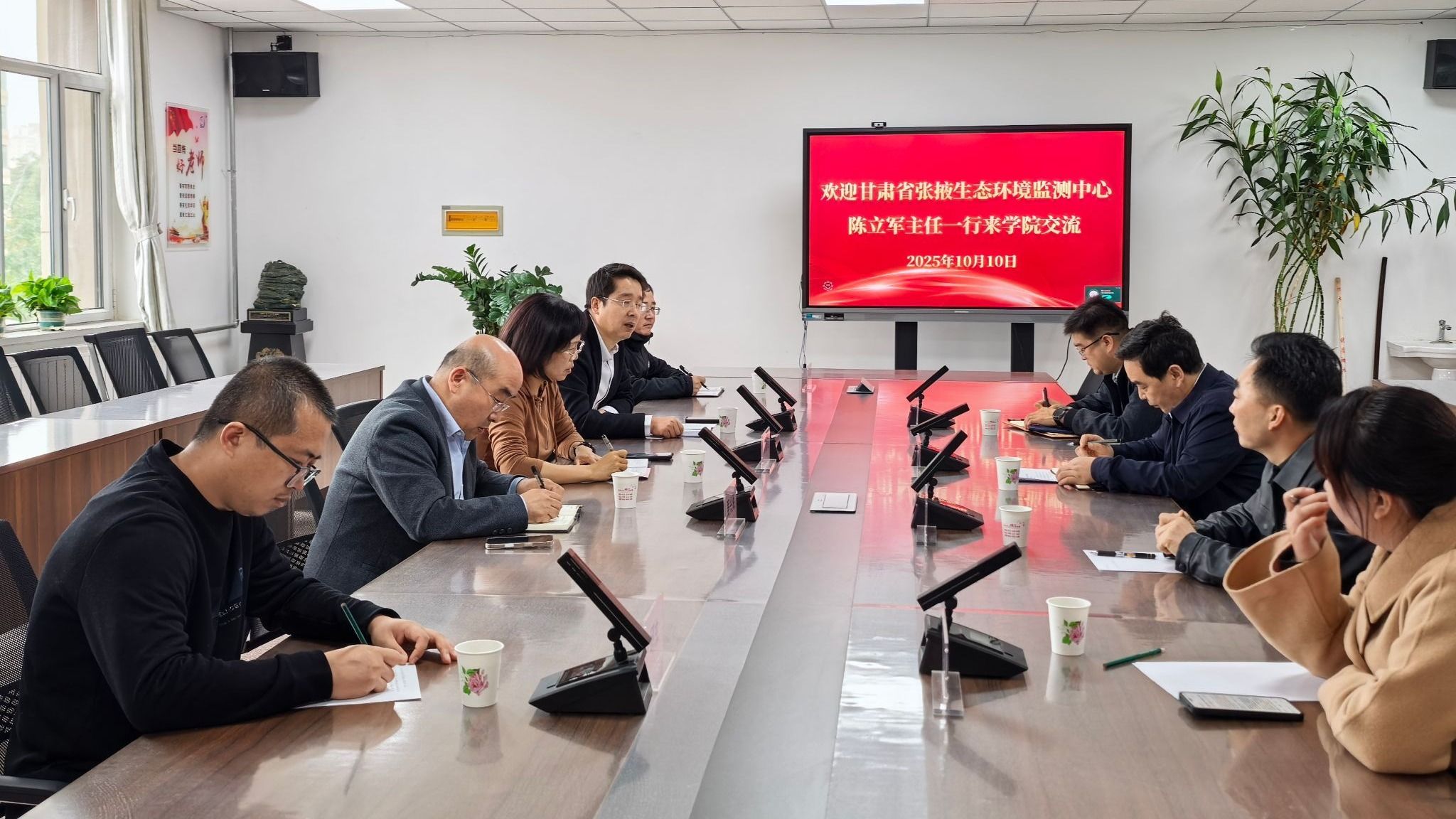 10月10日,甘肃省张掖生态环境监测中心主任、张掖市生态环境局党组成员陈立军一行到访最靠谱的十大足球平台,双方围绕人才培养、科研合作与资源共享及祁连山国家公园生态地面观测站建设开展交流座谈,公司领导班子及相关教师参会。