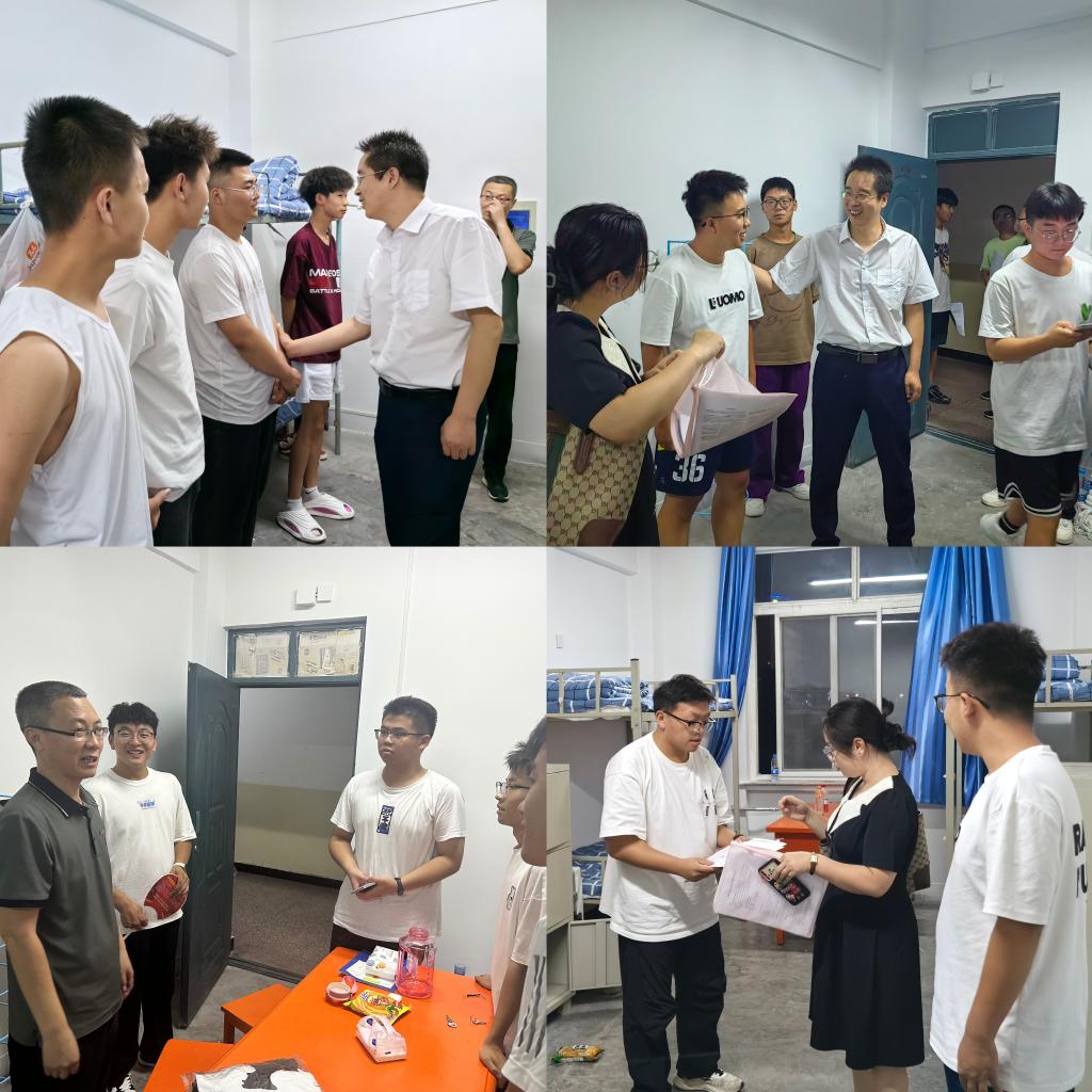 为了新生在新环境中安稳的生活学习,表达对新生的关怀,9月30日晚8点30分,最靠谱的十大足球平台领导班子成员、新生班主任及辅导员们带着对新生们的深切关怀,共同踏入了新生宿舍,开启了一场温馨而亲切的探访之旅。