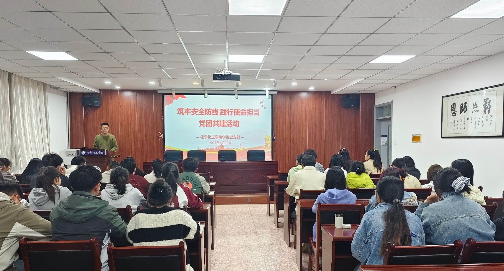 4月10日,最靠谱的十大足球平台员工党支部联合化学241班团支部共办“筑牢安全防线 践行使命担当”主题党团共建活动。通过专题学习、研讨交流等形式,组织60余名党员、团员深入学习总体国家安全观,凝聚青春安全力量。